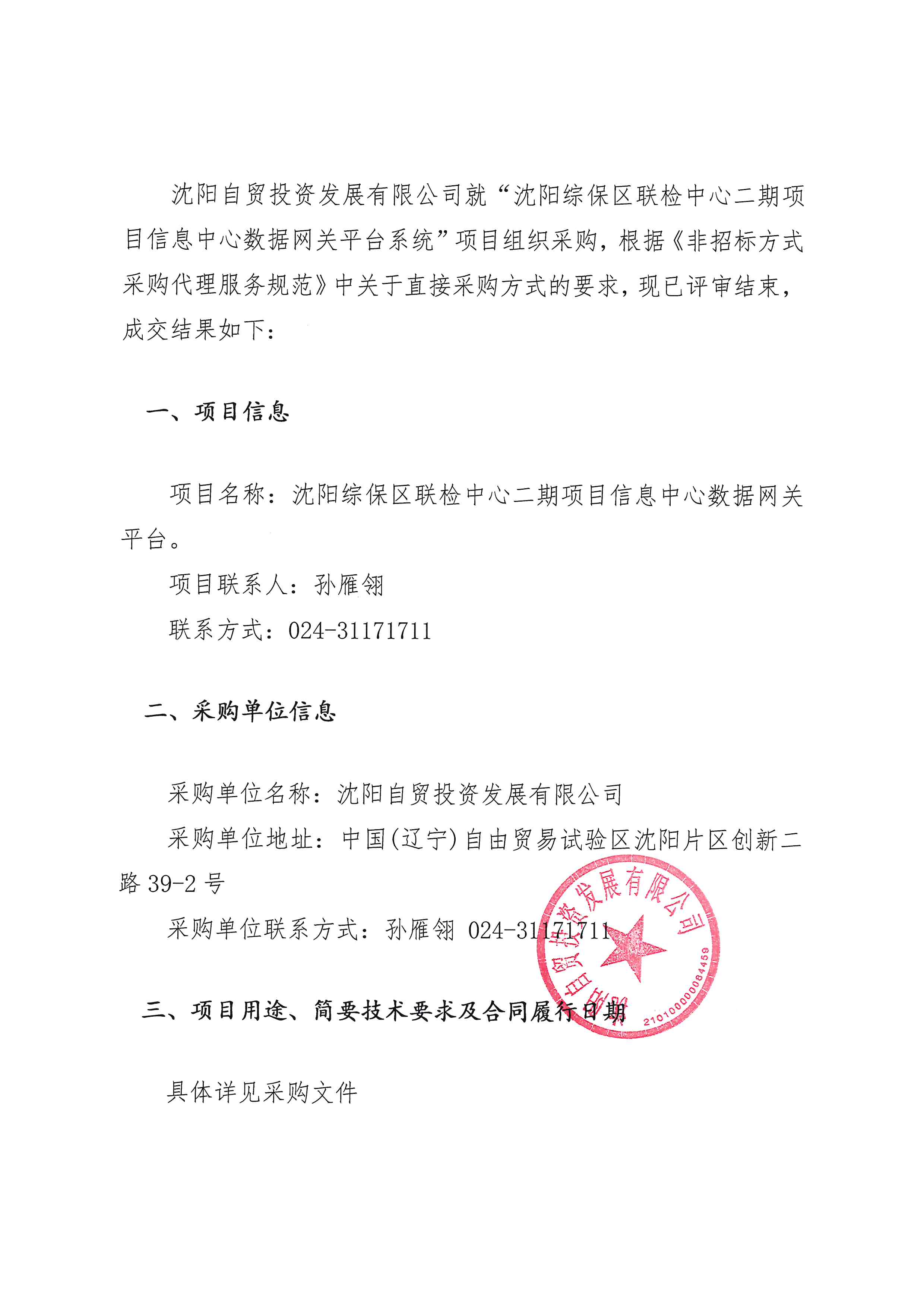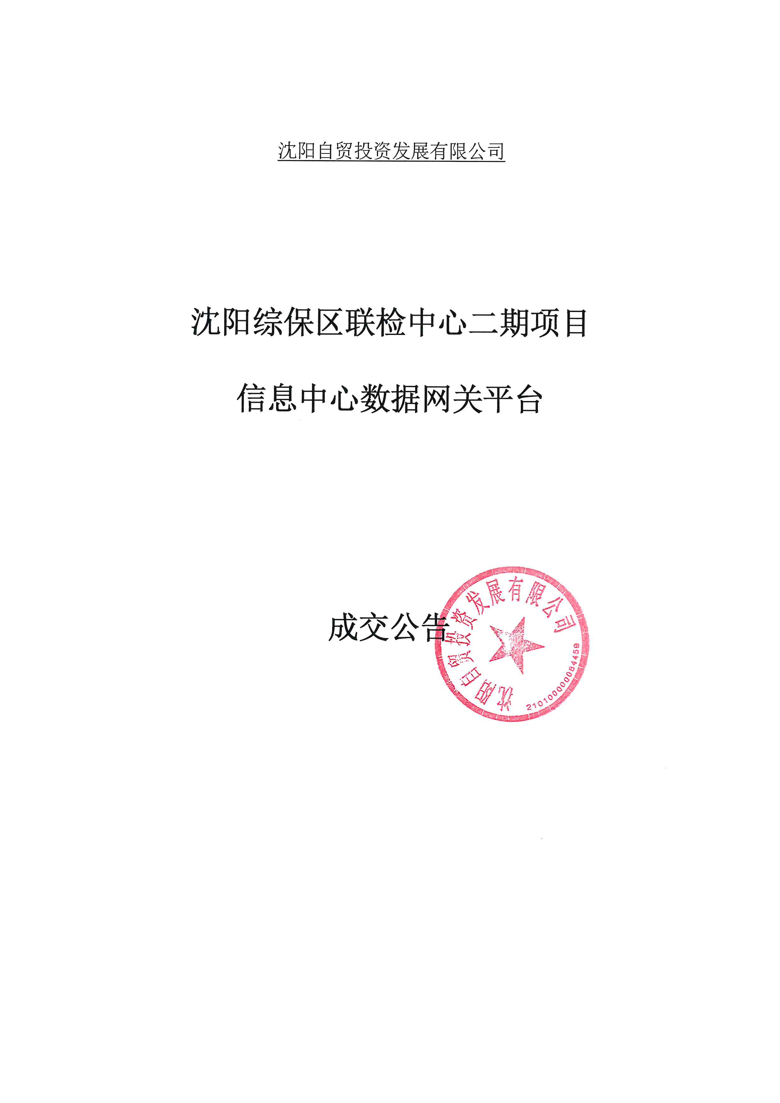 沈陽綜保區(qū)聯(lián)檢中心二期項(xiàng)目信息中心數(shù)據(jù)網(wǎng)關(guān)平臺結(jié)果公示